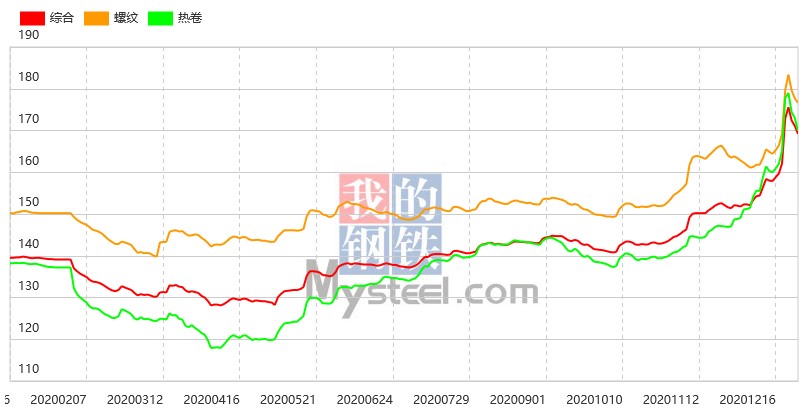 8日國(guó)內(nèi)建筑鋼材價(jià)格穩(wěn)中小幅上漲,現(xiàn)主要城市螺紋鋼均價(jià)4433元/噸,較上個(gè)交易日上漲11元/噸。具體來(lái)看,期螺震蕩走高,上午國(guó)內(nèi)建筑鋼材價(jià)格穩(wěn)中小幅拉漲。從成交來(lái)看,市場(chǎng)投機(jī)性需求減弱,下游采購(gòu)需求因寒潮天氣影響亦有所放緩。鋼廠方面,隨著需求的走弱,鋼廠出庫(kù)受阻,但考慮到原料成本居高不下,所以廠家挺價(jià)意愿依然較強(qiáng)。多數(shù)商家對(duì)后市行情持觀望態(tài)度,整體以積極出貨降低庫(kù)存為主。預(yù)計(jì)短期國(guó)內(nèi)建筑鋼材價(jià)格或繼續(xù)窄幅震蕩運(yùn)行。